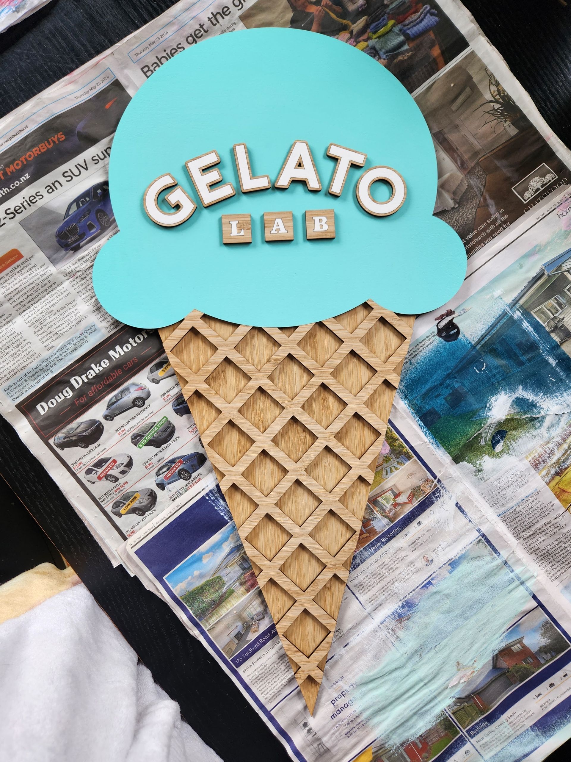 We were very lucky to be asked by our friends at The Gelato Lab to design and craft a series of wooden gelato wall artworks to brighten up their new shop space. We loved this project from start to finish. Here we share with you our process, from the initial digital concept design to the final result.